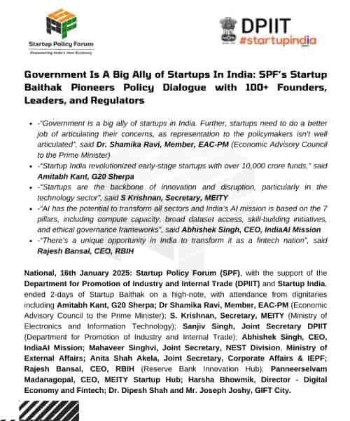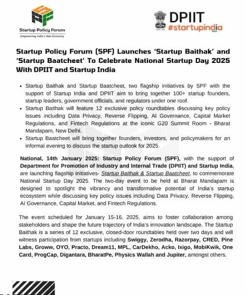 Startup Policy Forum (SPF) launches ‘Startup Baithak’ & ‘Startup Baatcheet’
